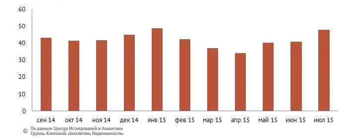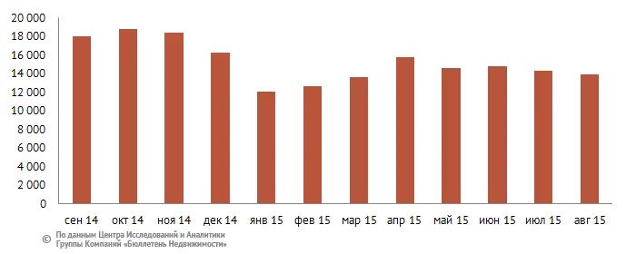 Вместе с тем, объемы предложения жилья в продаже, начиная с третьего квартала, также уменьшались. Так по данным наших аналитиков, в январе, после ударной декабрьской распродажи, в листингах светилось всего 12 тыс. объектов, к апрелю количество объявлений о продаже квартир выросло до 15,7 тыс., к августу опустилось до 13,9 тыс. (см. график 2). Среднемесячный объем предложения вторичного жилья на квартирном рынке Петербурга составил 13,8 тыс. объектов. Для сравнения: в 2014 этот показатель был на уровне 17,9 тыс., а в 2013 году – 21,7 тыс. объектов.