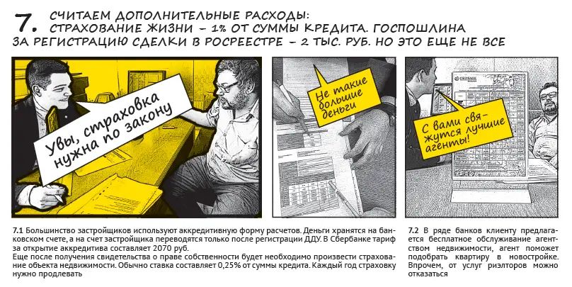 Считаем дополнительные расходы: страхование жизни – 1% от суммы кредита. Госпошлина за регистрацию сделки в Росреестре – 2 тыс. руб. Но это еще не все. В частности, когда дом будет построен, потребуется отчет об оценке квартиры
