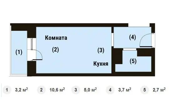 Площадь самой компактной студии составляет 20,1 кв. м: всего на 0,1 кв. м меньше, чем в доме на строчку выше. А вот стоимость значительно ниже – это плюс.