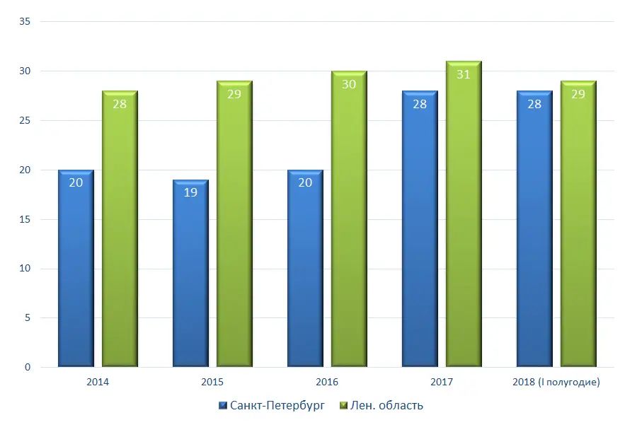 По словам Ольги Трошевой, руководителя Консалтингового центра «Петербургская Недвижимость», в пригороде предложение квартир-студий находилось на максимальном уровне в период 2015-2017 гг. (от 29 до 31% от общего числа квартир).