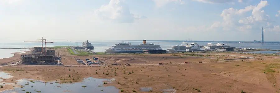Запущенный в середине нулевых проект «Морской фасад» предполагал создание в западной части Васильевского острова около 470 га искусственной суши – на ней должны были разместиться пассажирские терминалы Морского порта в окружении новых жилых микрорайонов. Сам намыв, по тем планам, должны завершить в середине 2019 года. Но на сегодня намыто лишь менее половины.