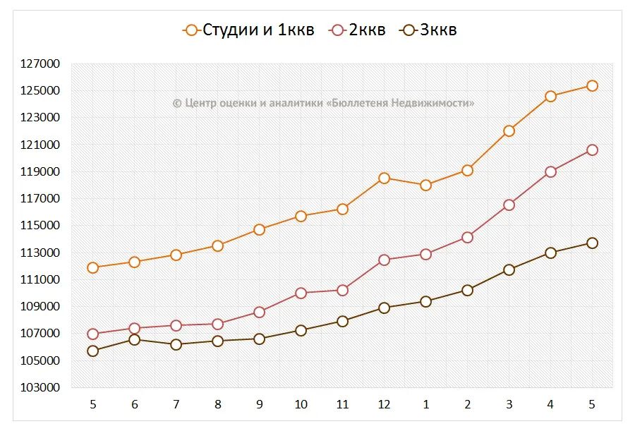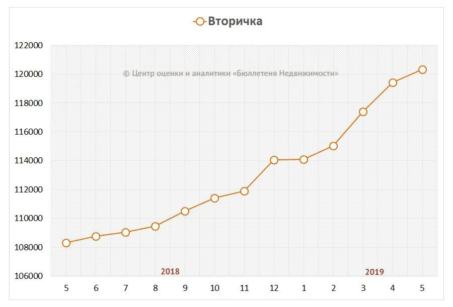 По данным Центра оценки и аналитики «Бюллетеня Недвижимости», в минувшем мае средняя цена предложения квартир на вторичном рынке выросла на 0,77%, что составило 915 руб. с кв. м.