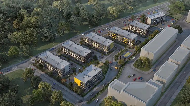 Этот объект от своих соседей, сданных ранее, отличается в первую очередь величиной – семь четырехэтажных корпусов рассчитаны в общей сложности на 196 квартир, то есть по 24–30 в каждом доме. Для любой петербургской новостройки – показатель очень скромный, но для Павловска проект считается крупным. Архитектура корпусов выполнена в лаконичном скандинавском стиле, который для петербургских предместий подходит как нельзя кстати.