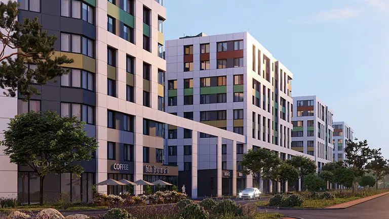 В составе комплекса будут построены дома высотой 9–13 этажей. Главной своей «фишкой» в компании называют зеленые и «умные» технологии, которые применяются в инженерных решениях и материалах. К тому же дома будут иметь наивысший класс энергоэффективности А+. Все они строятся с навесными вентилируемыми фасадами. Будущим клиентам доступны студии, одно- и двухкомнатные квартиры площадью от 21,4 до 59,3 кв. м.