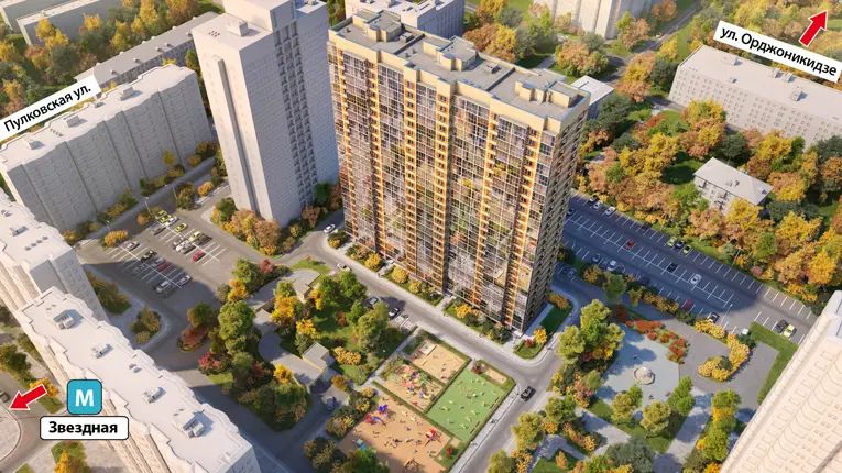 Россыпь новостроек у «Звездной» продолжает 25-этажный проект Группы «Эталон» на 312 квартир. Это тоже класс комфорт, кирпич-монолит. До метро 800 метров, если имеем в виду ближайшую «Звездную». «Купчино» и «Московская» на расстоянии около 2 км. От КАД чуть подальше, чем «Звездный дуэт».