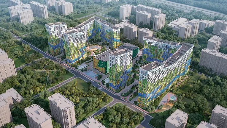 Первая очередь ЖК сдана в III квартале 2019, вторая сдается вот-вот, во II квартале 2020. Комфорт-класс; все опции, характерные для серии «Светлый мир», имеются. Во второй очереди – два монолитных жилых корпуса высотой 18–25 этажей.