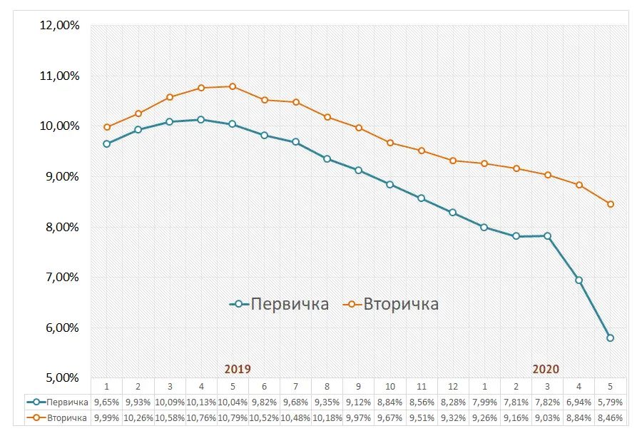 Разницу в величине ставок по кредитам на строящиеся и готовые объекты можно увидеть на графике.