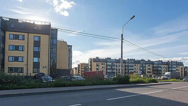 На южной окраине города – в поселке Шушары Пушкинского района – еще дешевле. Дома в жилом комплексе Aerocity от компании «Лидер Групп» строятся вдоль Старорусского проспекта, рядом с полями и необжитыми территориями. В составе первой очереди проекта в IV квартале 2021 года сдается 11-этажный панельный дом. Однушку площадью 36 кв. м здесь можно приобрести за 3,2 млн руб. (86 тыс. руб. за кв. м). Это один из самых низких ценников в границах Петербурга на сегодня. Что объясняется невысокой популярностью локации из-за дефицита инфраструктуры – дорожной, социальной и пр. Добавим, что застройщик не слишком пунктуален и отметился регулярными переносами сдачи своих объектов в Ленобласти.