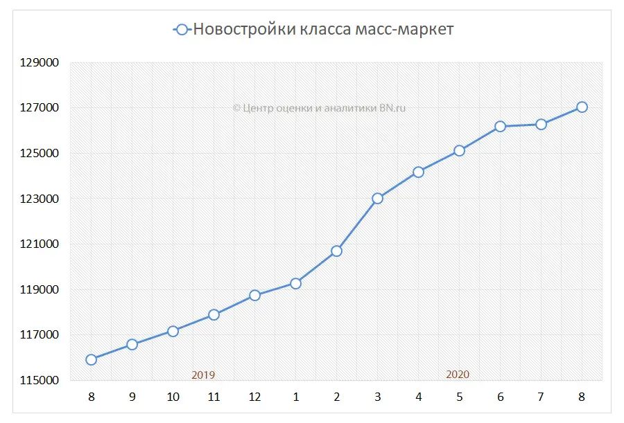– За три летних месяца средняя цена предложения петербургских новостроек класса масс-маркет (без учета пригородов) выросла на 1,53%, или 1914 руб. за кв. м, и к началу сентября составила 127,04 тыс. руб. за кв. м.