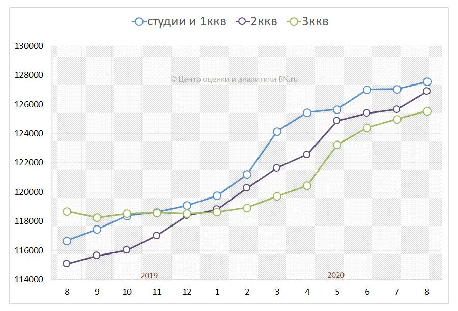 Средняя стоимость реализованного квадратного метра в Петербурге в июне – августе 2020 года по сравнению с тем же периодом 2019 года выросла на 25% (до 151 тыс. руб. за кв. м), в Ленобласти – на 22% (до 83 тыс. руб.). По сравнению с весенними месяцами 2020 года рост составил около 5% и 2% соответственно.