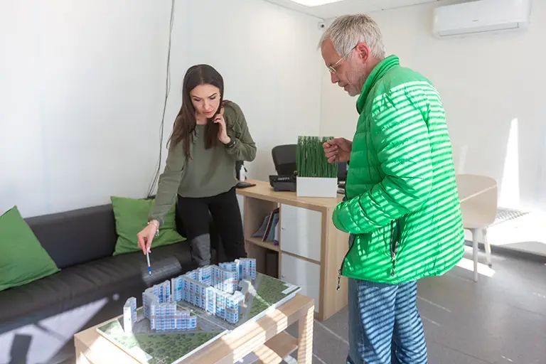 Девушки-менеджеры удивились нашему вопросу и принялись охотно рассказывать о том, какой здесь перспективный, интересный, социально однородный и позитивный район.