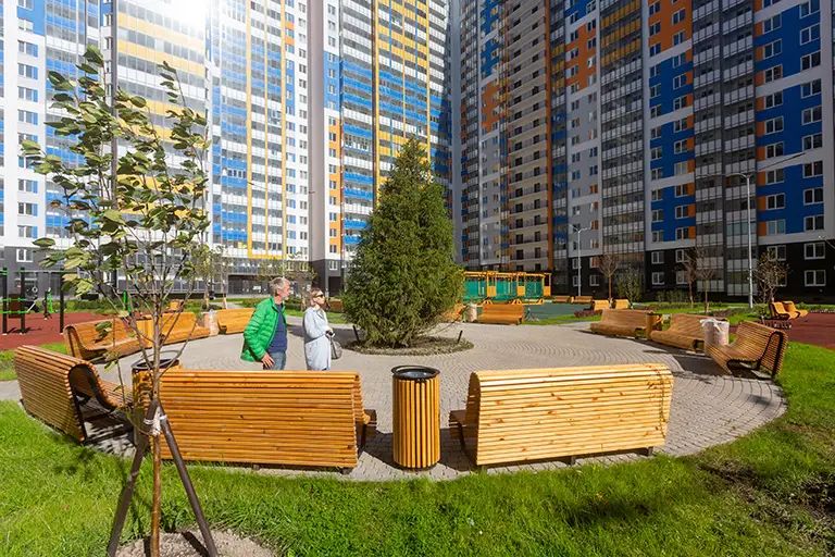 Во дворах высаживают ели: новый год уже скоро. То есть жилая среда здесь не ограничивается стенами малогабаритных квартир: созданы условия, чтобы соседи заводили знакомства и общались.