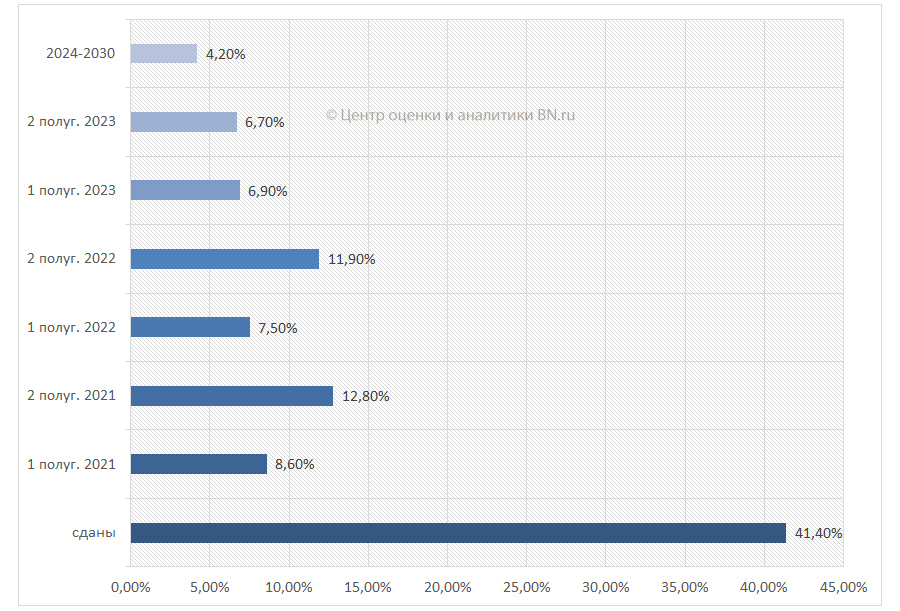 Сроки окончания строительства, % от общего количества строительных объектов в продаже