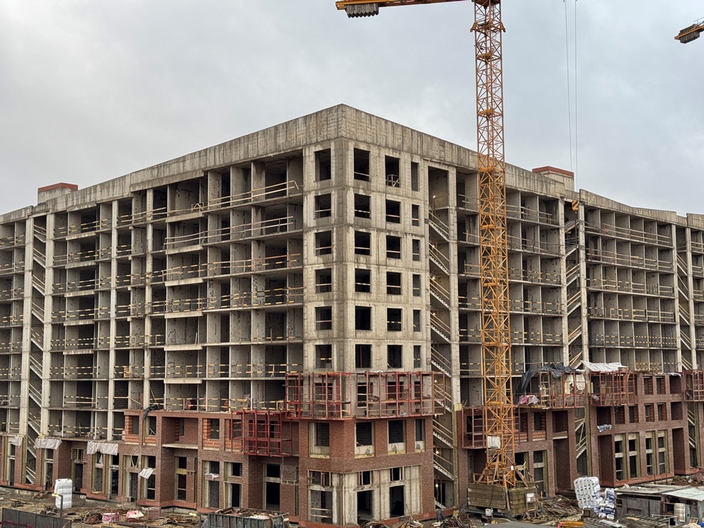 Возведение объекта ведется строго в соответствии с утвержденным графиком. Ввод дома в эксплуатацию запланирован на конец 2026 года.