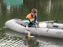 За день очистители успевают объехать от 10 до 35 прудов, обработка ведется семь недель.