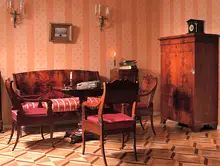 Войдя в комнату, Олег не сразу понял, что ему кажется «не таким». Большая комната с двумя окнами, выходящими на оживленный проспект. Убрано, лишней мебели нет. Та, что есть – массивная, резная, явный антиквариат. По стенам – картины в золоченых багетах. Тяжелые бархатные шторы. Наборный ухоженный паркет.