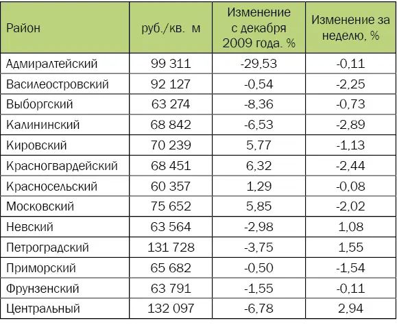 | Цены предложения по районам города | |