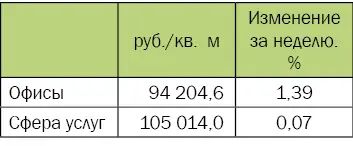 Средние цены предложения на офисные помещения, сфера торговли и услуг |