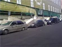 Инцидент произошел 11 июня текущего года. Бетонные секции, которые были крепежом защитного баннера, установленного во время разбора внутренней части дома, упали на припаркованные рядом машины. Прокуратура Петербурга возбудила уголовное дело по ст. 216 УК РФ (нарушение правил безопасности при ведении строительных или иных работ, если это повлекло по неосторожности причинение тяжкого вреда здоровью человека).
