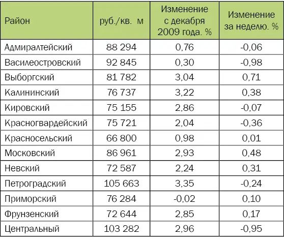 | Цены предложения по районам города | |