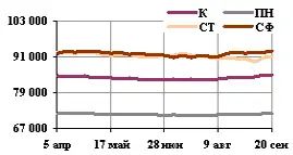 Средние цены предложения на офисные помещения, сфера торговли и услуг |
