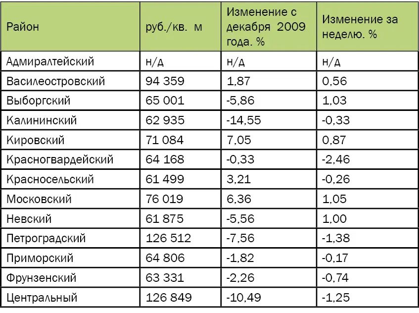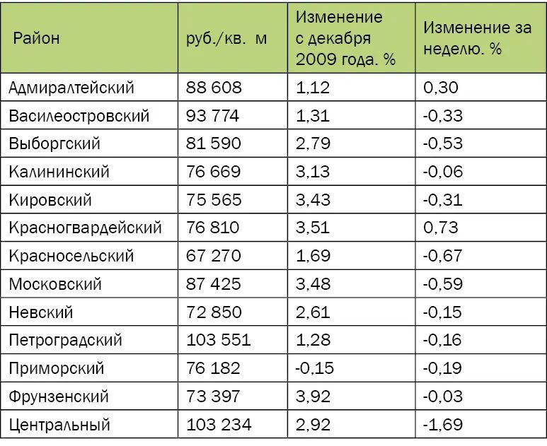 | Цены предложения по районам города | |