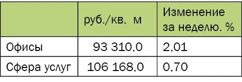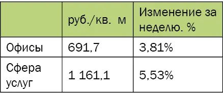 Арендные ставки на офисные помещения, сфера торговли и услуг |