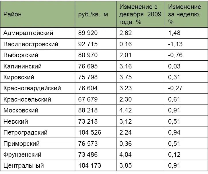 | Цены предложения по районам города | |