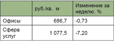 Арендные ставки на офисные помещения, сфера торговли и услуг |