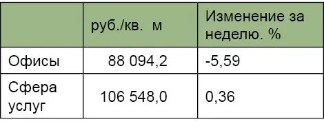 Средние цены предложения на офисные помещения, сфера торговли и услуг |
