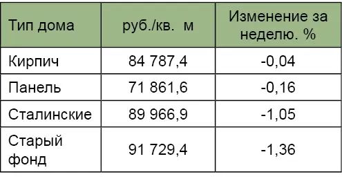 Средняя цена предложения на вторичном рынке жилья за прошедшую неделю понизилась на 0,53% и составила 82 455,5 руб./кв. м. |