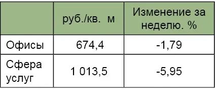 Арендные ставки на офисные помещения, сфера торговли и услуг |