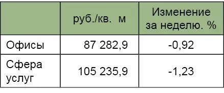 Средние цены предложения на офисные помещения, сфера торговли и услуг |