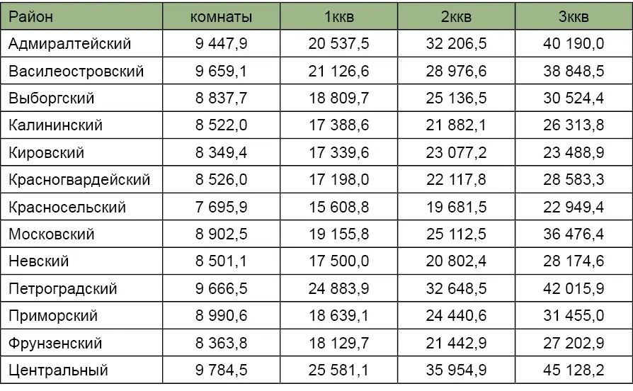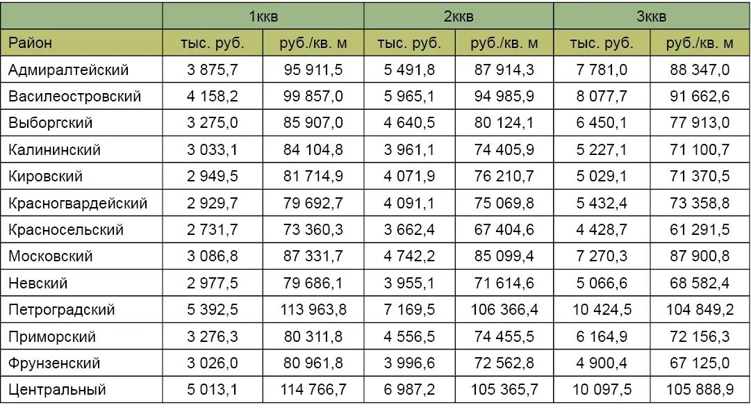 | Средние цены предложения по районам на вторичном рынке жилья |