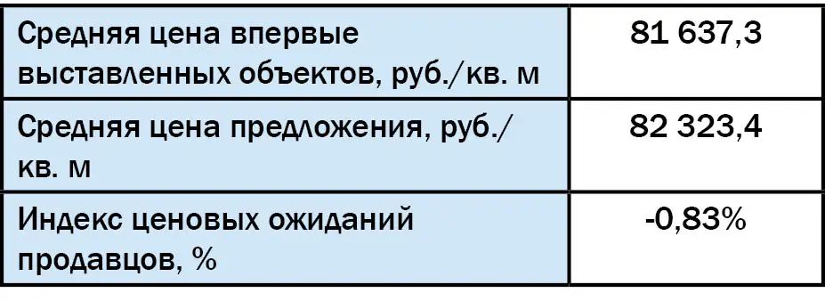 Индекс ценовых ожиданий продавцов на вторичном рынке жилья – соотношение средней цены впервые выставленных объектов к средней цене предложения по рынку (%). |
