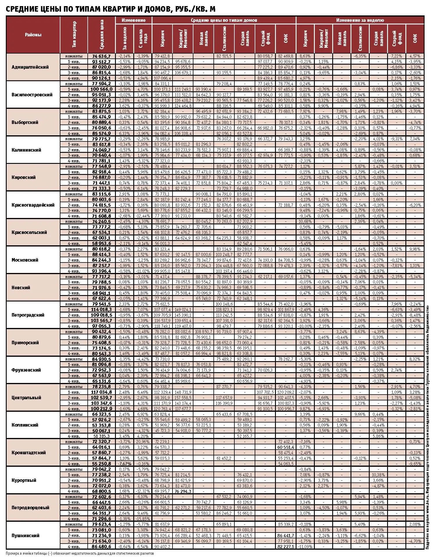 Самые существенные изменения – падение стоимости в Адмиралтейском районе – на 2,39%, до 87,8 тыс. руб. за кв. м, и рост в Василеостровском – на 1,2%, до 93,8 тыс. руб. за кв. м. В остальных районах колебания не превысили 1%.