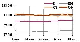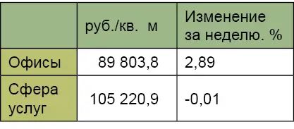 Средние цены предложения на офисные помещения, сфера торговли и услуг |