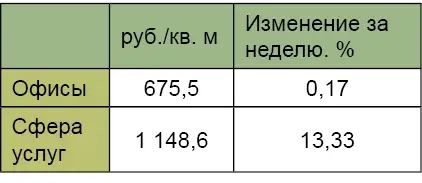 Арендные ставки на офисные помещения, сфера торговли и услуг |