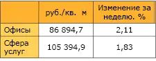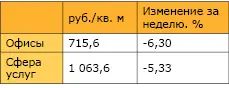 Арендные ставки на офисные помещения, сфера торговли и услуг |