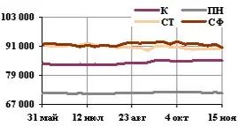Средние цены предложения на офисные помещения, сфера торговли и услуг |