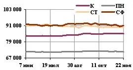 Средние цены предложения на офисные помещения, сфера торговли и услуг |