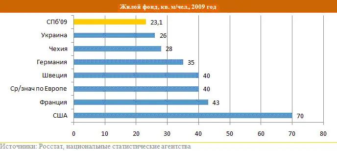 В России самый низкий в Европе коэффициент жилой площади на одного человека.