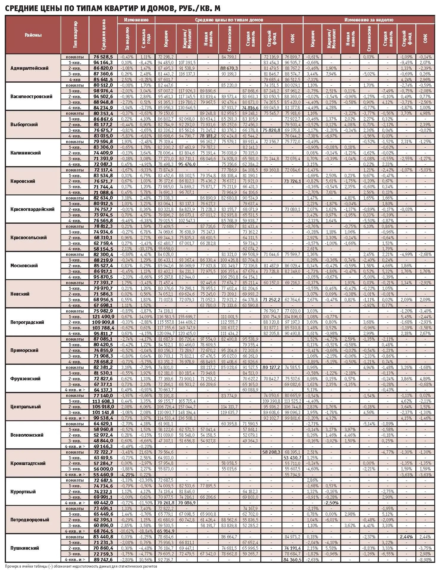 Больше всего выросла стоимость метра в Петродворцовом районе – на 0,98%, (средняя цена 63,4 тыс. руб.). Максимум отрицательных значений – 1,77% – в Василеостровском, где цена квадратного метра составила 91,8 тыс. руб.