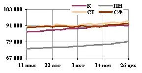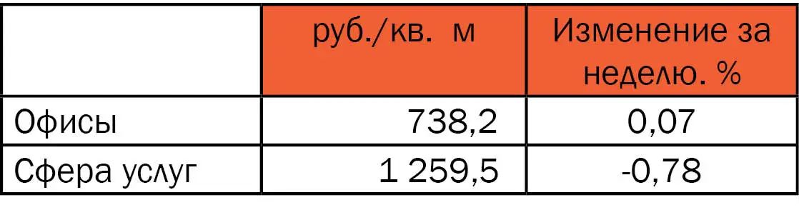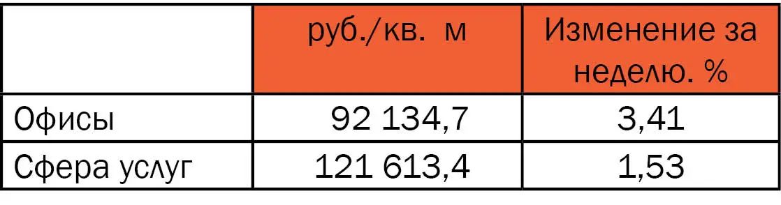 Средние цены предложения на офисные помещения, сфера торговли и услуг