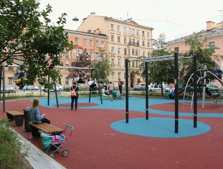 В сквере установлены новые спортивные тренажёры. Они напоминают те, что устанавливают в спортзалах, но более долговечны и безопасны для наружного использования. На оборудовании есть QR-коды с видео-подсказкой о том, как правильно выполнять упражнения. Тренажеры подходят для горожан с ограниченными возможностями. Игровая и спортивная зоны расположены на мягком покрытии.