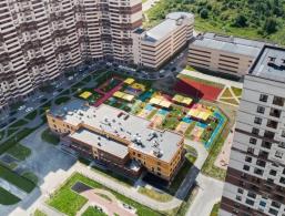 Во дворах квартала №19 «Группа ЛСР» построит школу и два детских сада. Также на территории квартала появятся прогулочные зоны, спортивная и детская площадки с атравматическим покрытием, велопарковки и велодорожки.