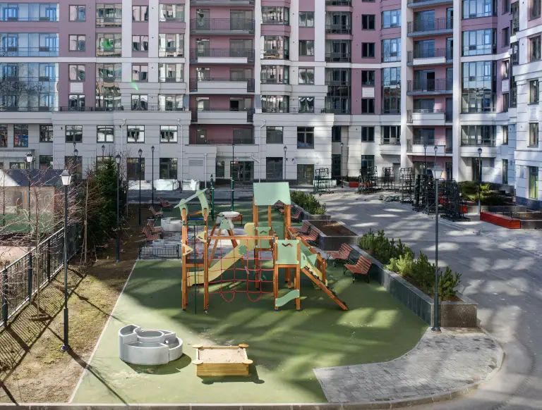 Новая площадка детского сада №10 Невского района расположена в ЖК «Дом на набережной». На первых двух этажах одной из секций жилого дома расположились помещения детского сада на 60 малышей.