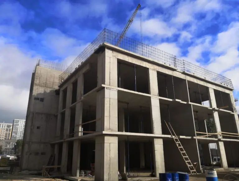 В настоящее время на объекте завершились работы по устройству монолитного каркаса, рабочие приступают к кладке внутренних перегородок. Объект планируется ввести в эксплуатацию одновременно с жилым комплексом - в первом квартале 2021 года.