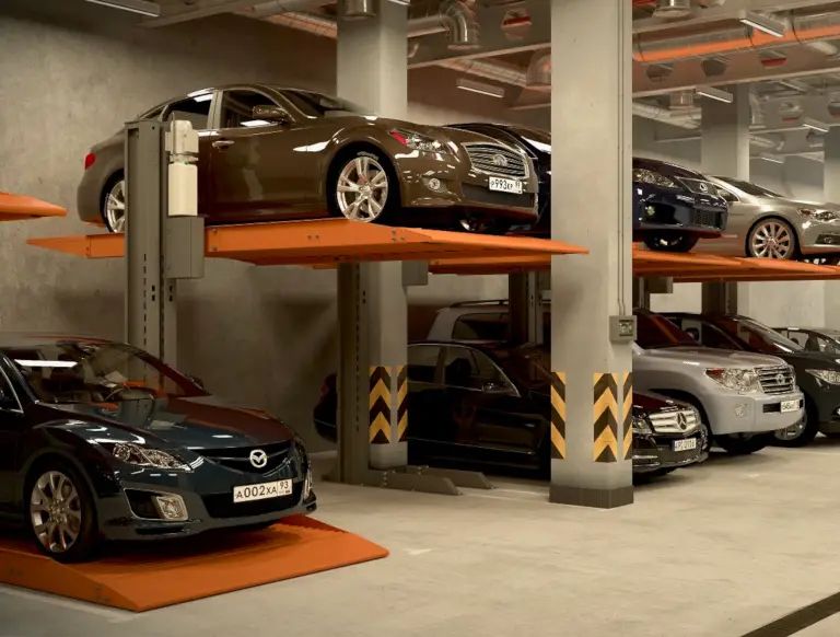 Подземный паркинг комплекса рассчитан на 78 автомобилей. Большинство мест – семейные и оборудованы механизированными подъемниками, позволяющими разместить сразу два автомобиля на верхнем и нижнем ярусах. Попасть в паркинг можно на лифте с жилого этажа.