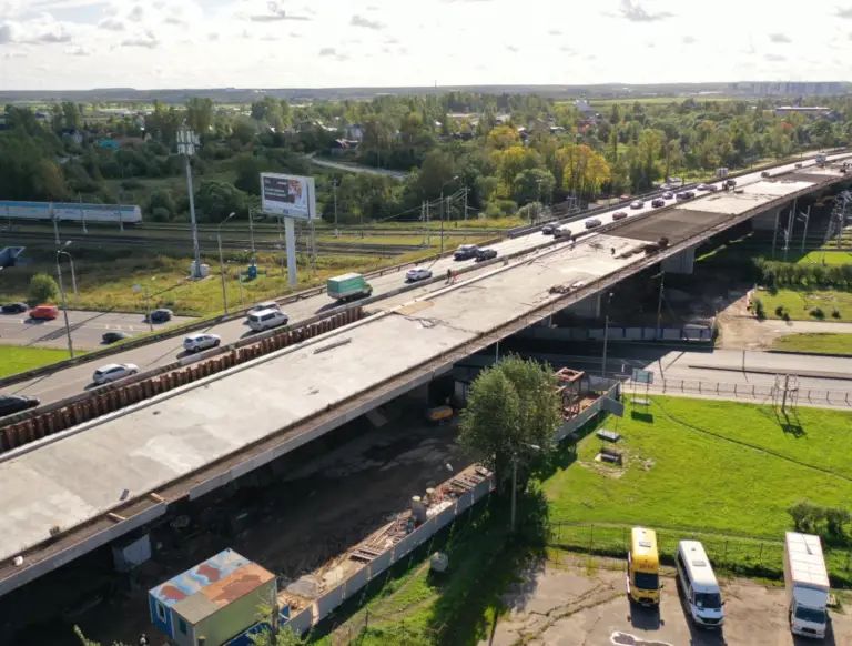 Готовность путепровода на сегодняшний день составляет 30%. До конца года планируется переключение движения на построенный путепровод первой очереди.